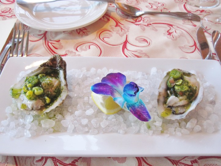 The first course of fresh oysters stole the show in terms of creativity – they were served with sweet corn and asparagus. Again, the traditional salty-sea taste of the oysters combined with the burst of sweetness in the corn jumped off my palate, and the crunch of the asparagus provided the texture (a good way for first timers to get over the “sliminess” of oysters).