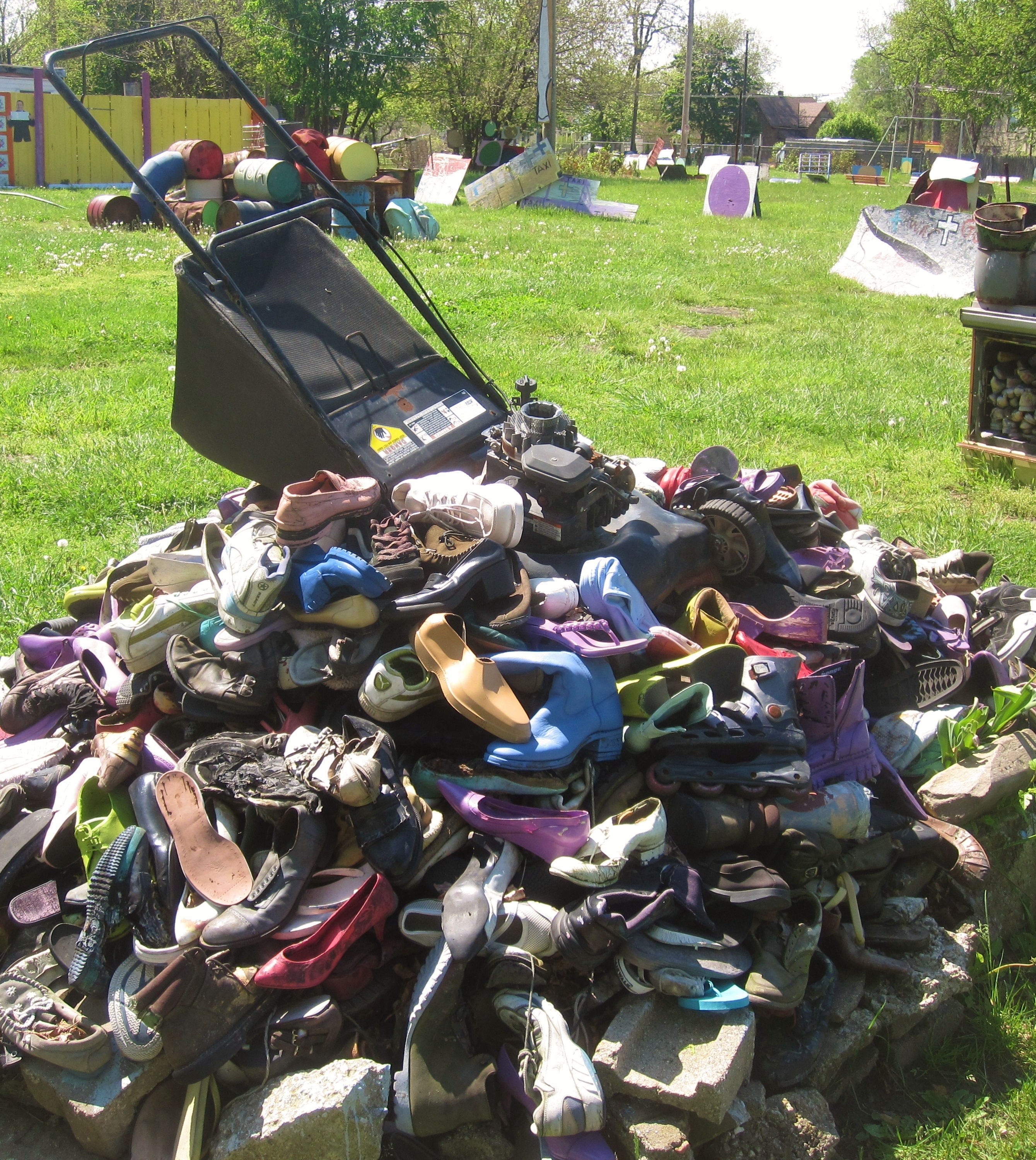 Just to play devil’s advocate: What if the time, energy, and land went towards building parks and playgrounds? A pile of shoes with a lawnmower on top is full of symbolism and beauty, but would it not be better suited for a museum?