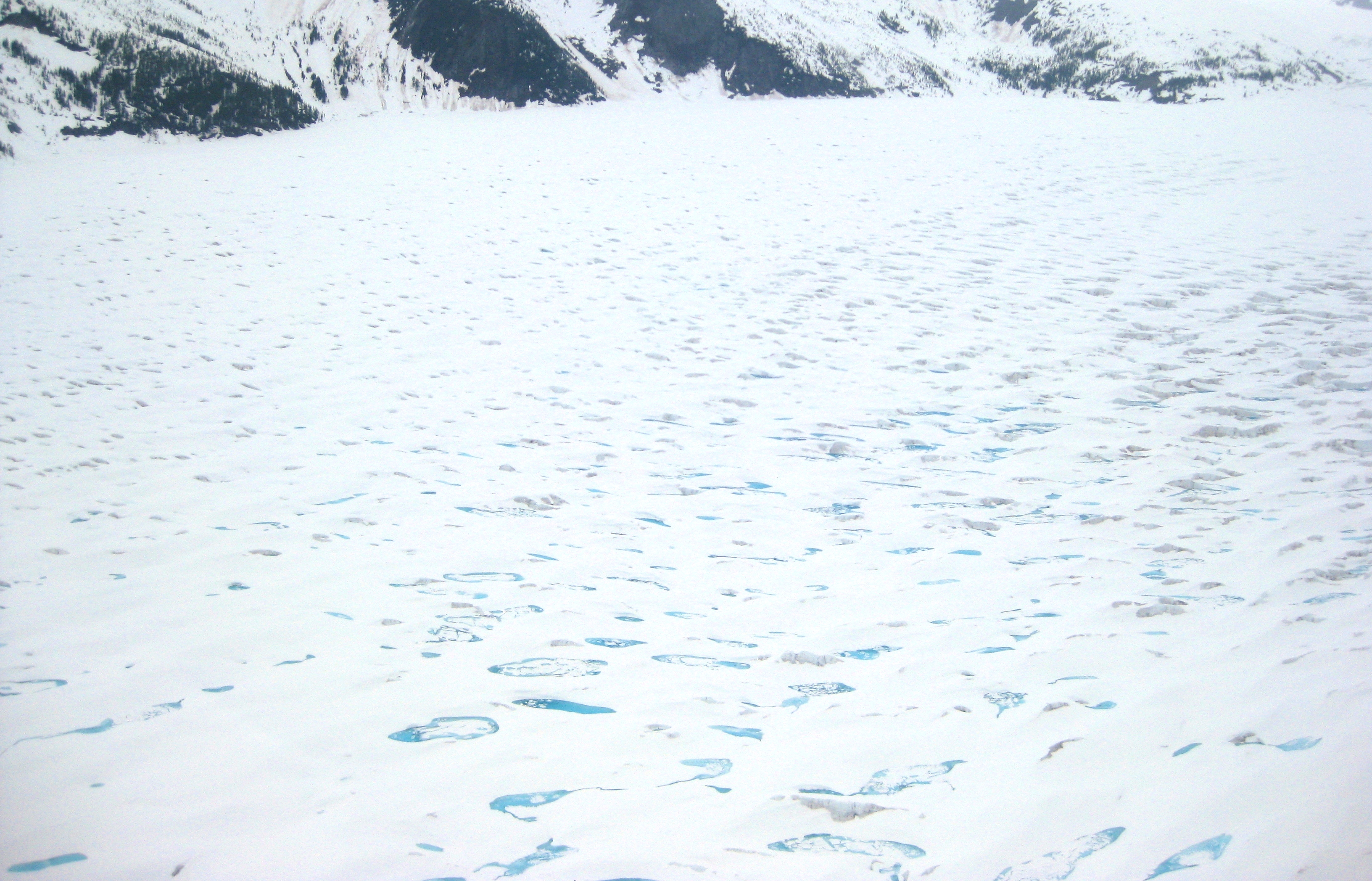 Upon landing on the Taku river (which feels about the same as landing on concrete, although the view out the window is much better) and arriving at the lodge, I sat on a swinging bench on the front porch, looking out over the water, the glacier coming down the mountain to my left. I could see the blue tint in the glacier – the frozen block of ice clearly could not be described as being plain white. Readers in the northern part of America should not picture the snow in their backyards – this was different (the ice is frozen so solid that it pushes out all the oxygen. When light enters it creates a prism, producing the blue hue).