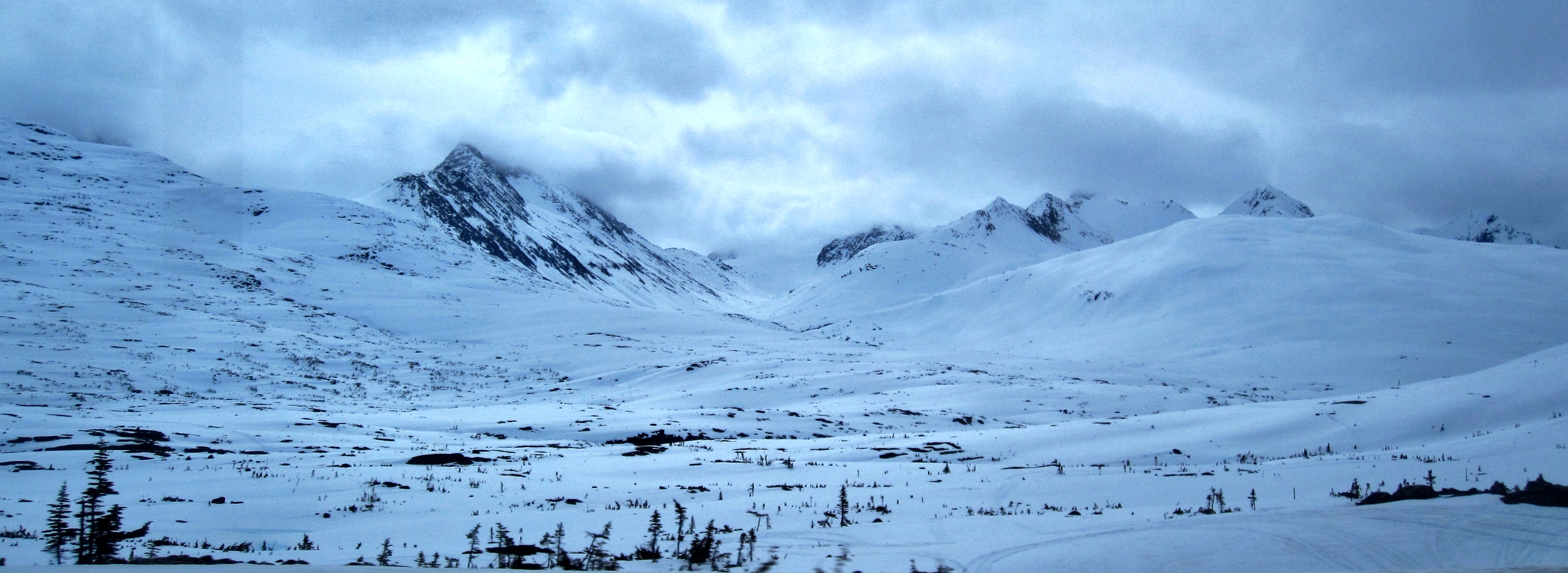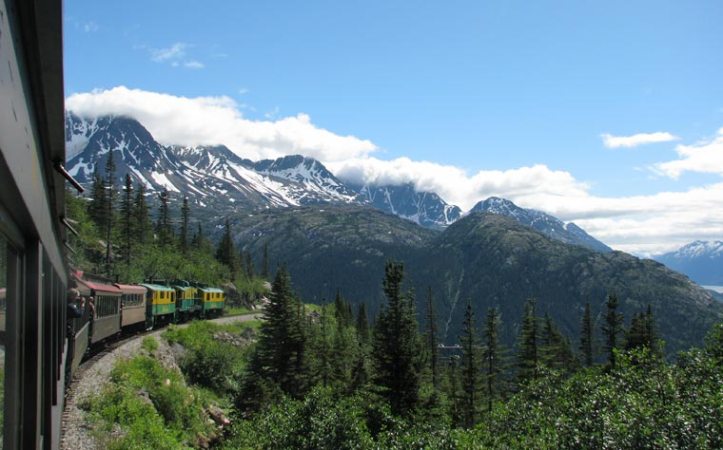 Although we had pleasant temperatures and good visibility below the peaks, we battled an overcast sky for most of our time in Skagway. You’ll see in the photos how it prevented me from capturing the contrast between the sky and the mountains, but I did the best I could. The first couple photos are courtesy of White Pass Yukon Railroad to illustrate the scenery on a clear, sunny day: