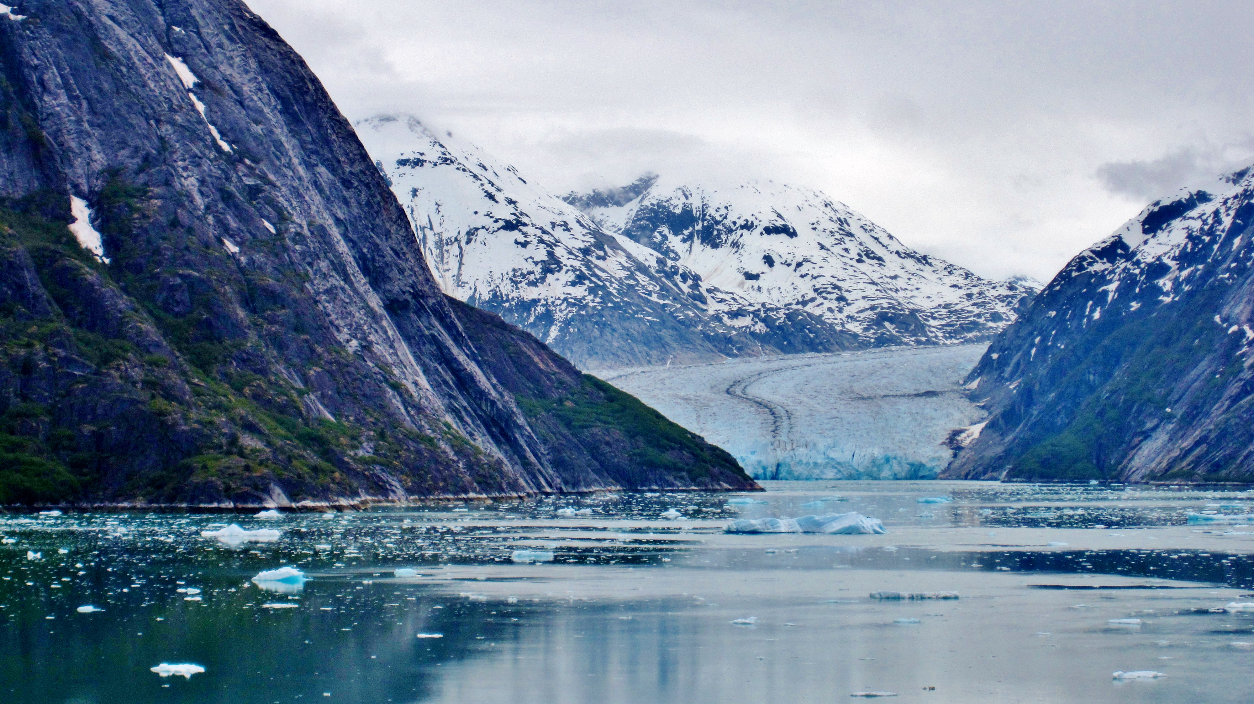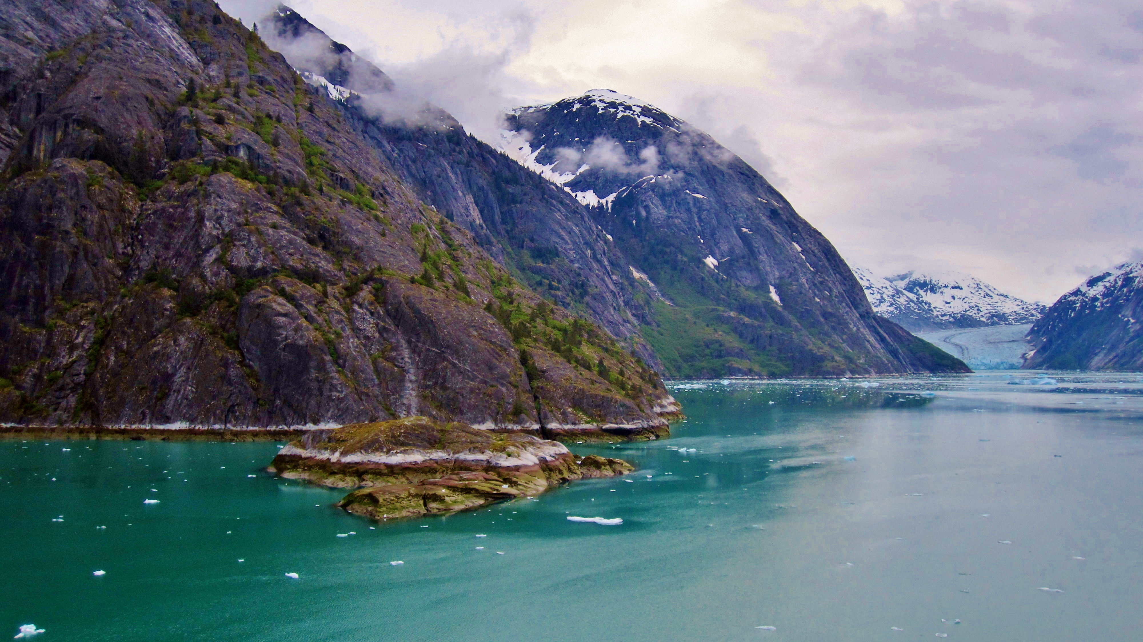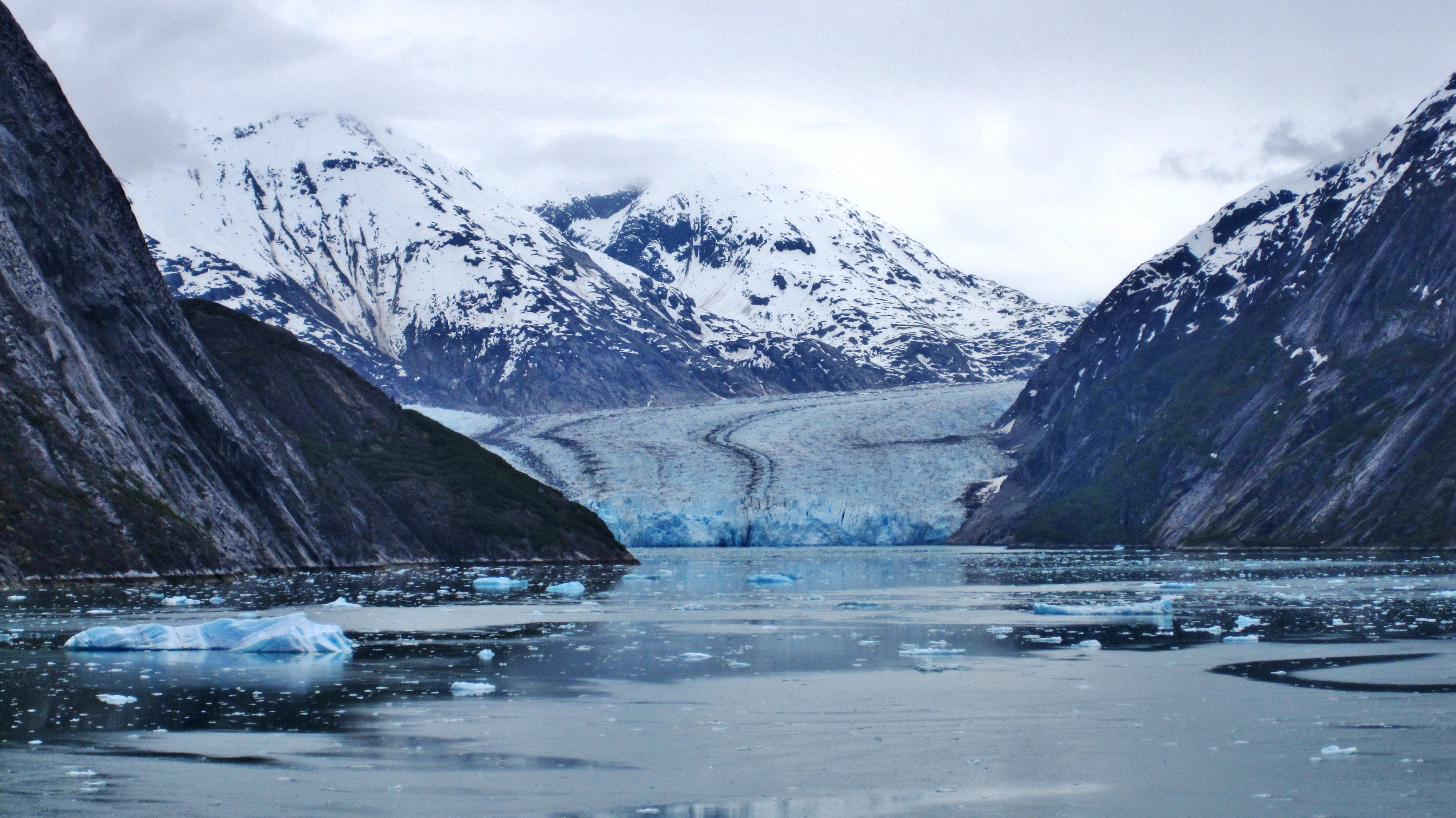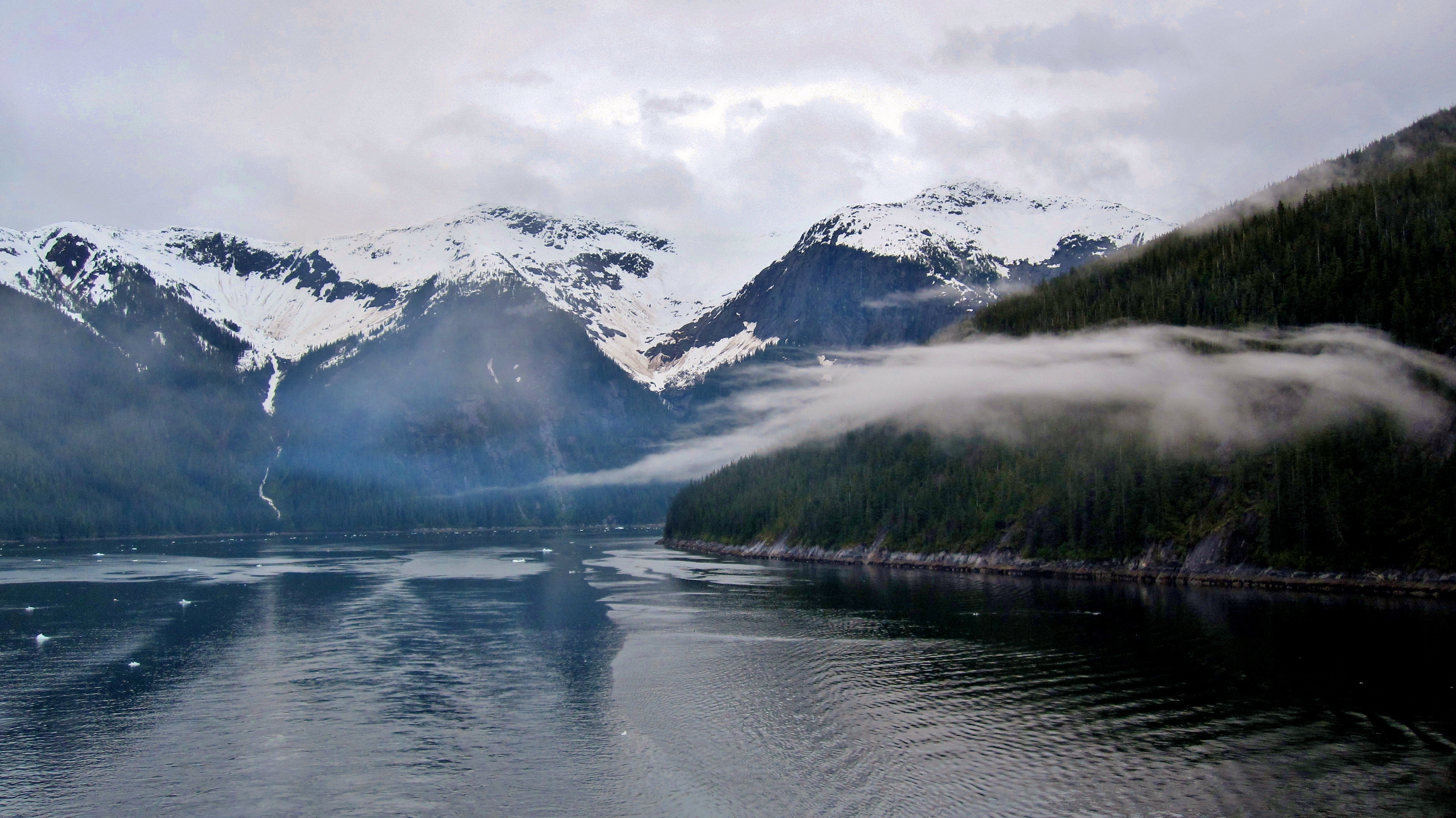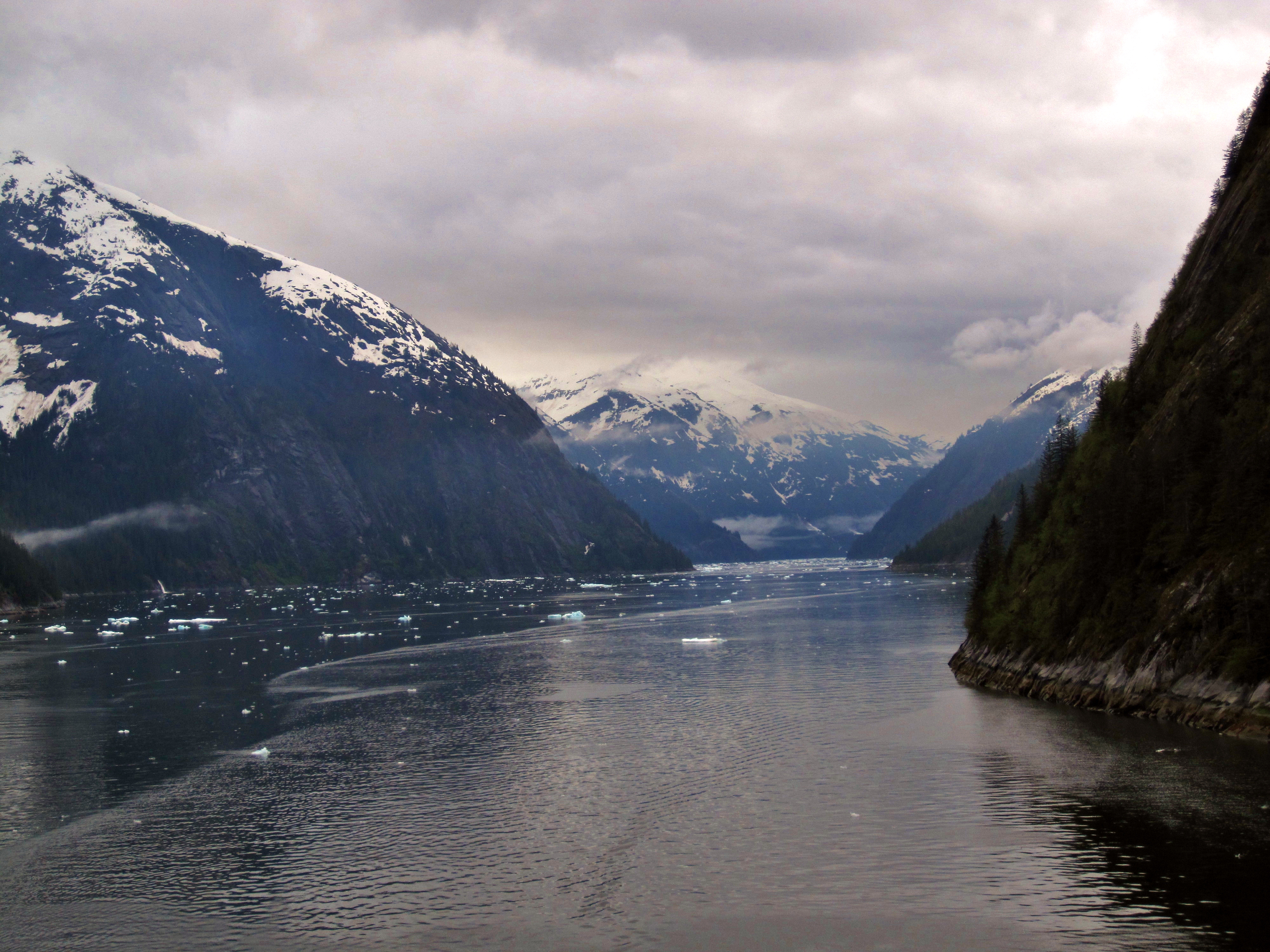 I’m currently sitting in a lounge that’s located on the top deck of the Rhapsody, writing from a table that sits in front of floor-to-ceiling windows. We’re directly in front of Dawes Glacier, slowly spinning in a circle (we’ve been here for about 20 minutes now). This is the second arm, or channel, that we’ve sailed down today. The ship has consistently been about 100 yards from the shore on both the port and starboard sides, and the mountains, glaciers, pines, snow, waterfalls and low-hanging clouds have filled the windows since Sunday morning.