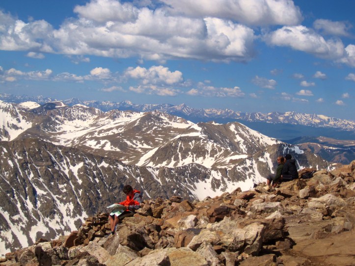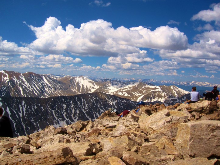 Arriving at the top of Quandary Peak was by no means anti-climatic – just take a look at the photos. The sight lines exploded and people were drinking beer, hanging out (my sorry ass stuck with coconut water). It was really the nonchalance that impressed me, that made me shake my head and laugh. You know, climb 14,000 ft, have a beer, climb down. Whatever.