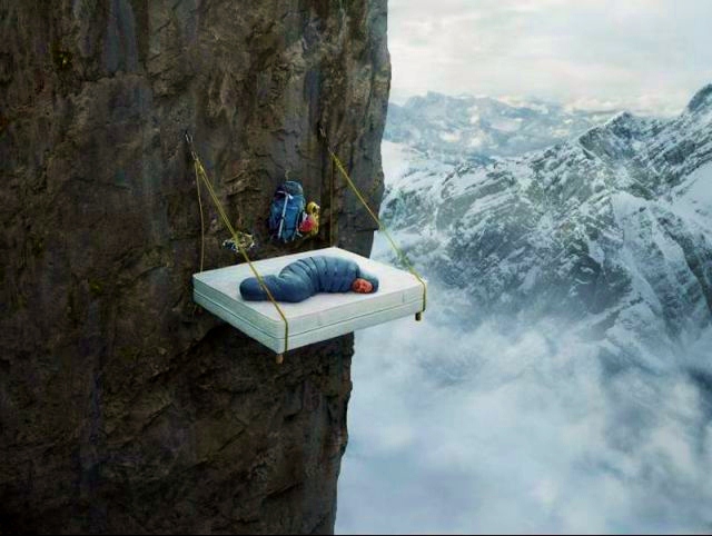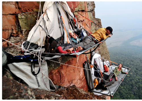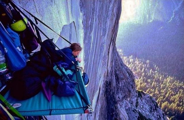 The portaledge is a device/tent that climbers use to sleep during multiday climbs. While lots of people are concerned about their kids rolling out of a bunk bed, advanced climbers are sleeping suspended in the air – sometimes thousands of feet above the ground.