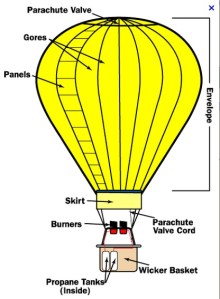 And I could certainly feel the heat as the tallest man in the basket, the burners shooting flames up into the “envelope”- the official term for the bag that holds the hot air (see diagram below). When I arrived at the field and the pilot began instructing me on how to start the inflation process using a small fan, the simplicity of the operation overwhelmed me.