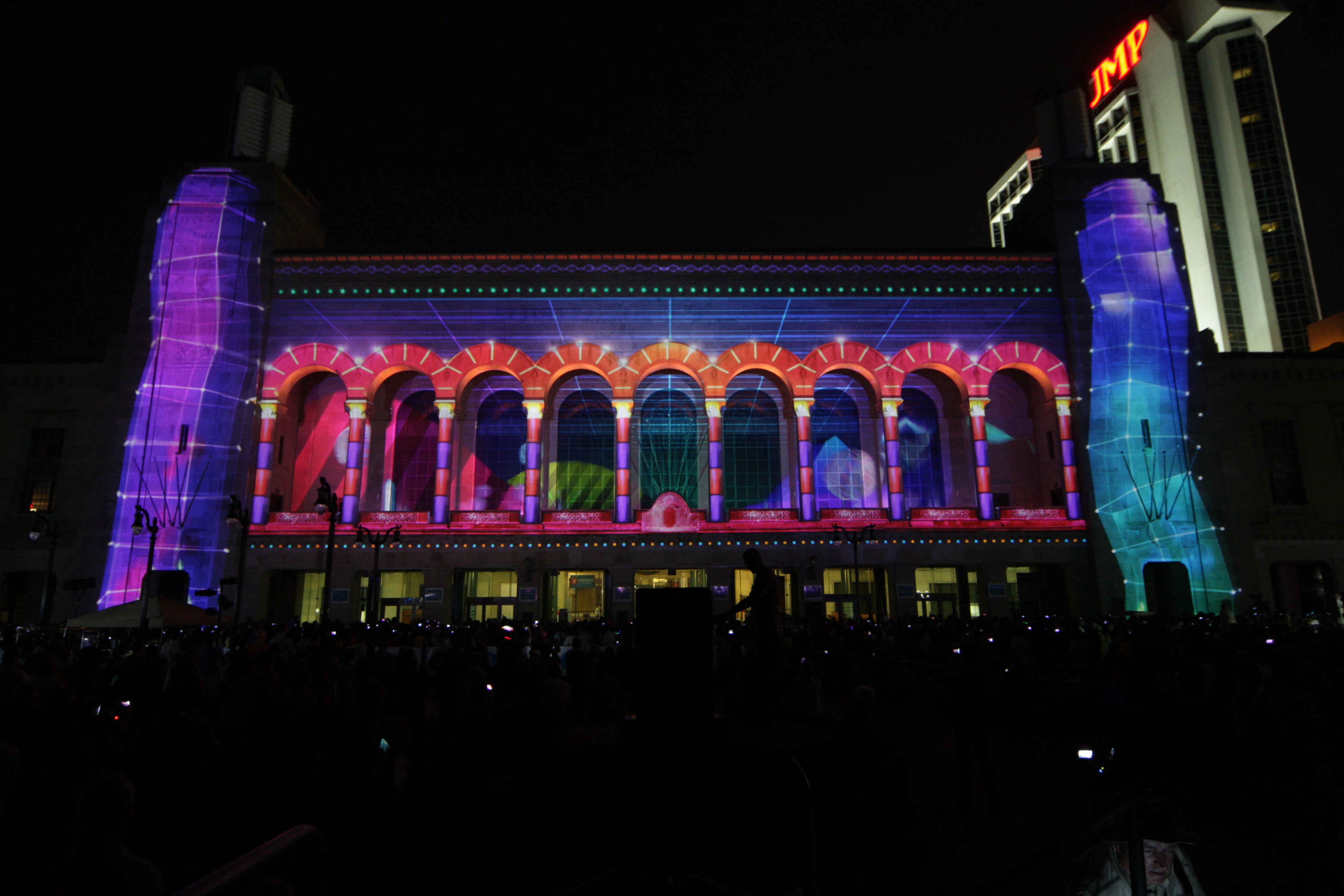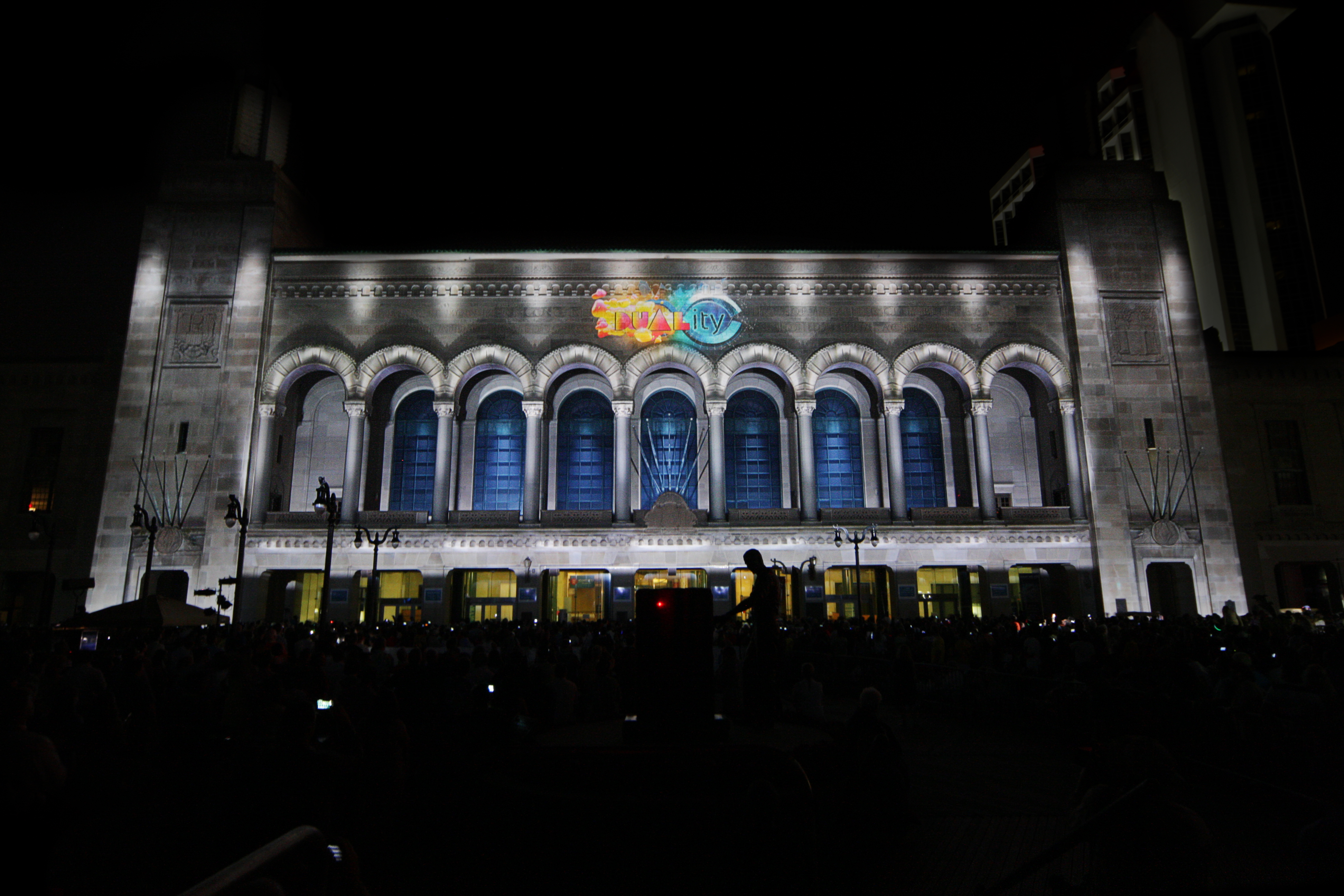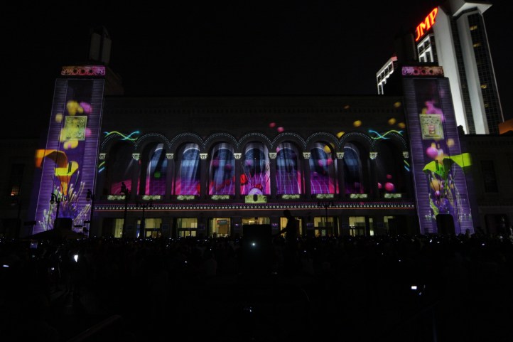 Projected onto the historic Boardwalk Hall and running every half hour, Duality starts at sundown, is free to the public, and is eight and a half minutes in duration. I was impressed – they did a really nice job with it – and I think my favorite part was when they made it seem like the building was crashing down.
