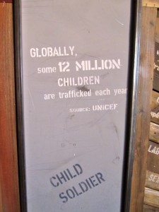 Another thing that’s crazy: This all didn’t happen that long ago. We are still feeling the affects of slavery on some level in the racial divide that we see today. And although not in its tradition form, an exhibit at the Freedom Center points out that slavery itself still exists in 2012. In 2009, there were 43 human trafficking prosecutions in the United States, split evenly between labor and sex trafficking.