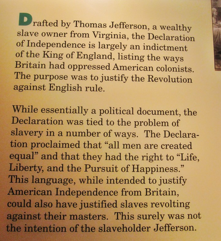 I knew a lot of the information presented at the Underground Railroad Freedom Center before I went. I knew about the Declaration of Independence and I knew that the founding fathers were slave owners, but I’d never thought deeply about the true hypocrisy of our break from Britian. That’s not me throwing stones, that’s unfortunately the facts forming the reality of the situation: