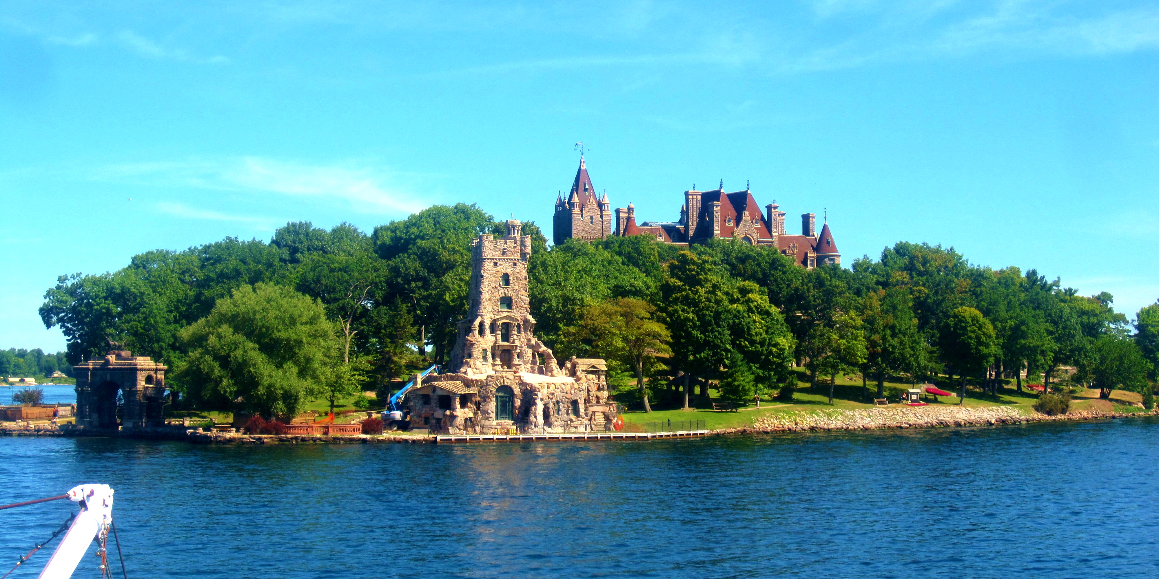 Let’s start with Boldt Castle, a tragic story when you step back and look at it. Boldt worked his way up from dishwasher to hotel owner, made a bazillion dollars, and found the gal of his dreams. In 1900, he began building the mother of all Valentine’s Day gifts for that aforementioned woman, a 120-room castle upon a heart-shaped private island. One would assume that his entire self looked forward to the project’s completion, to the rest of his life with his wife.