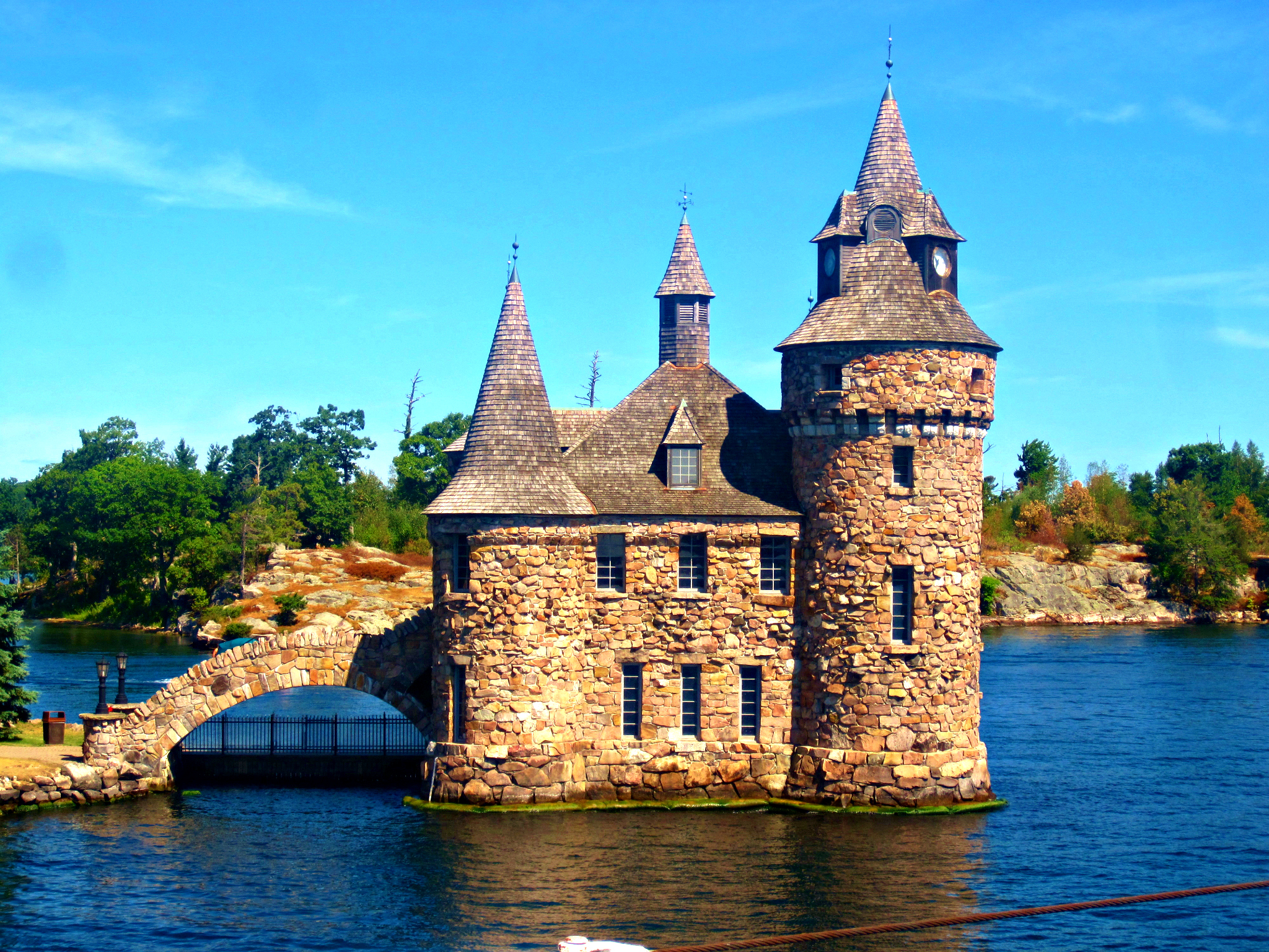 It can sleep up to six people – $700 for the first two and $50-$60 a person thereafter. Seems expensive, but the sticker shock wears off when you divide $900 by six and realize that you’re staying in a four-story castle in the middle of the Thousand Islands Seaway.