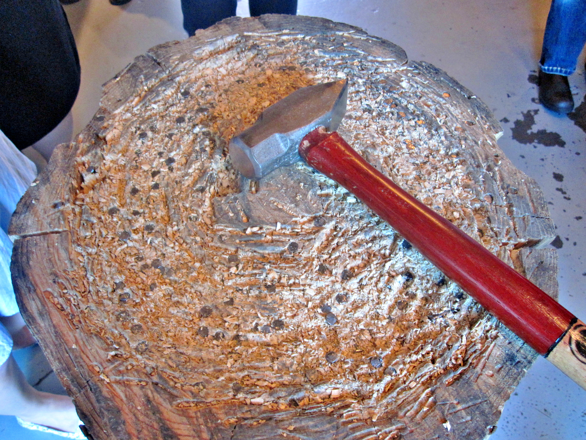 They seem like cool guys outside of their ability to make good booze as well – they even taught us a Swiss drinking game. It’s a “race” to hammer a nail into the log, last one buys the next round. A simple shoot-the-bull type of game that’s harder than it looks (you use a narrow-head hammer, the end to the right in the photo below). The video below illustrates the game well, but hopefully you have more fun than they appear to be having.
