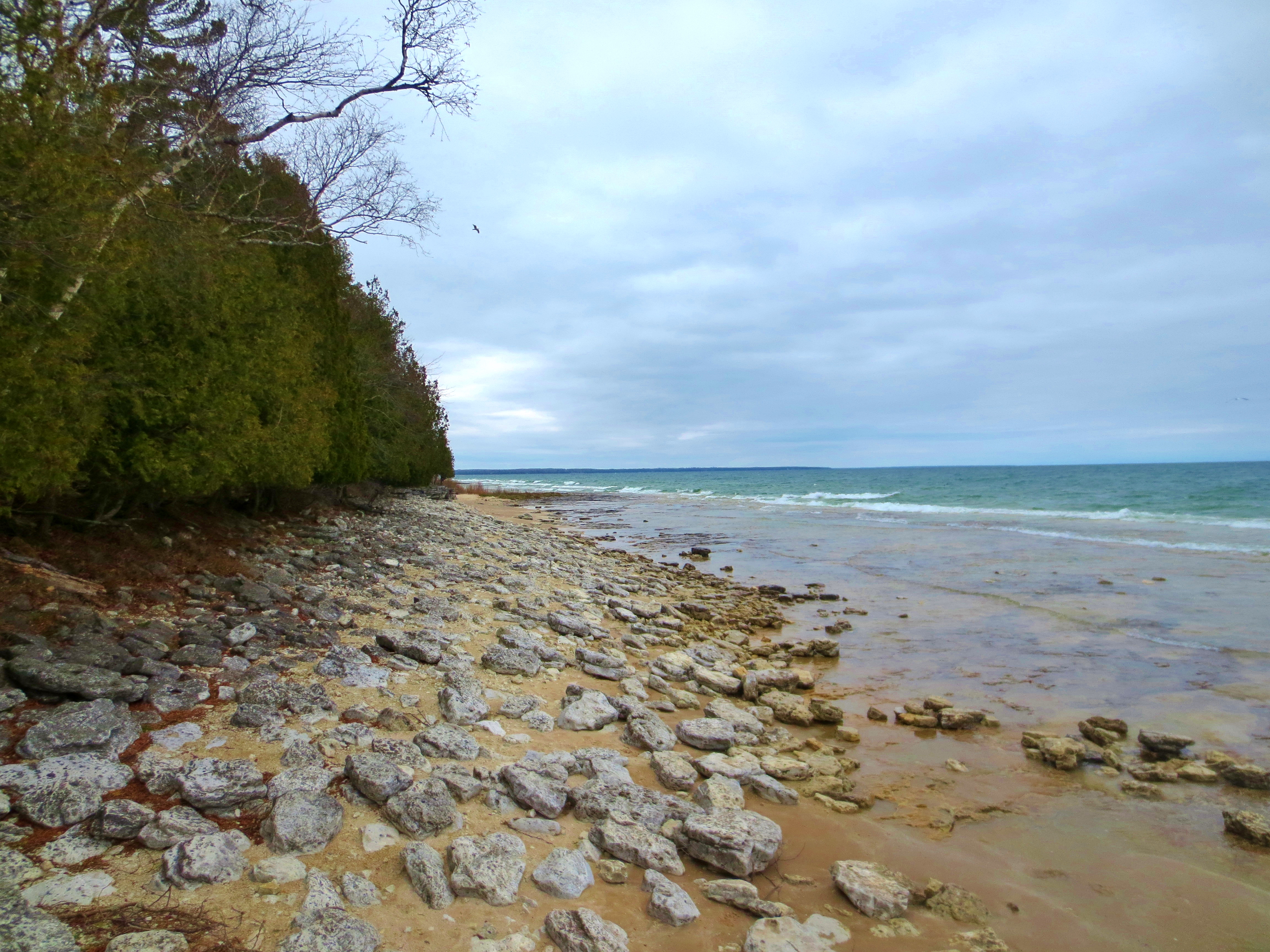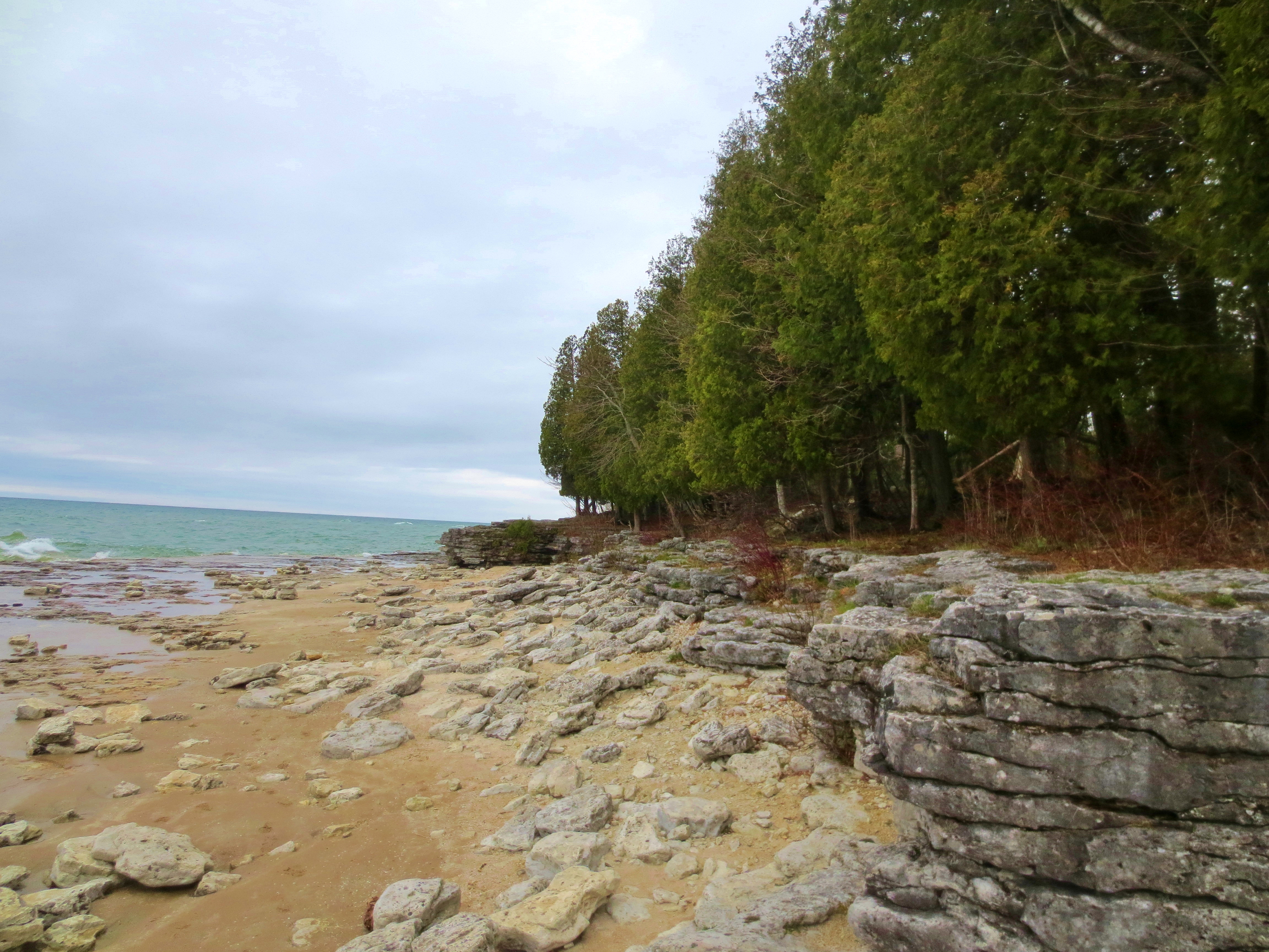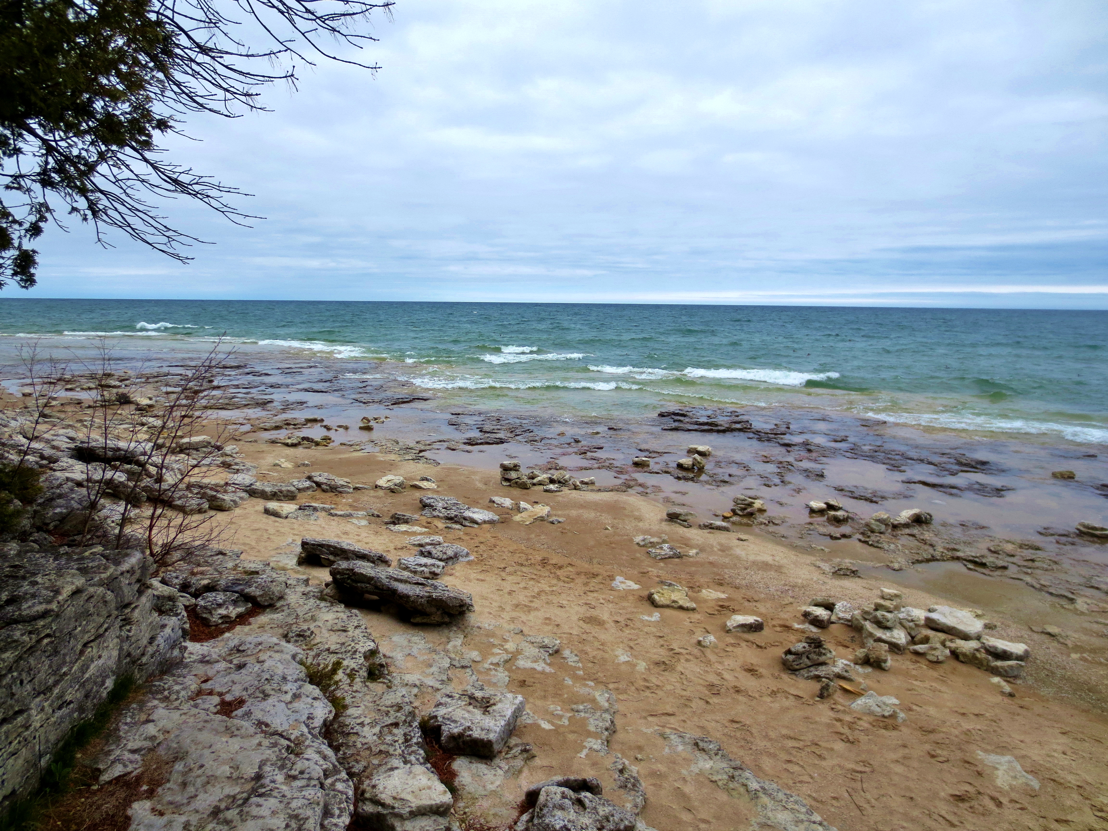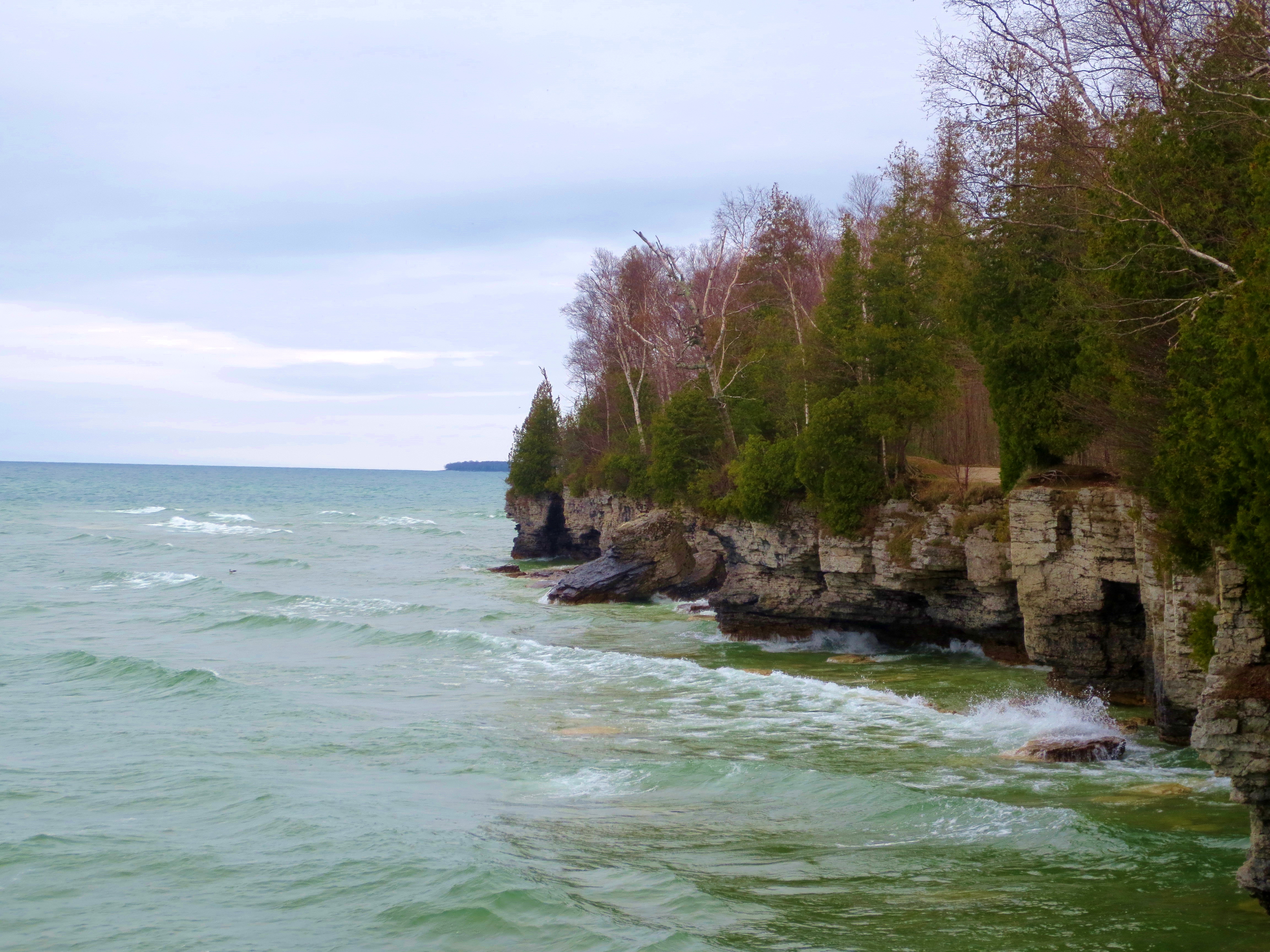 Obviously, I need more than one day to investigate the area before having any revelations, but let’s start with a visual. Door County has five state parks within its limits and lots of coastline (turns out, “Wisconsin coastline” is not an oxymoron). The shots below are from Cave Point County Park where glaciers shaped the area back in the day, creating a rocky and ridged coast with small caves and cuts. It seems like a great place to kayak and view from the water, and it’s on the east side of the peninsula on Lake Michigan.