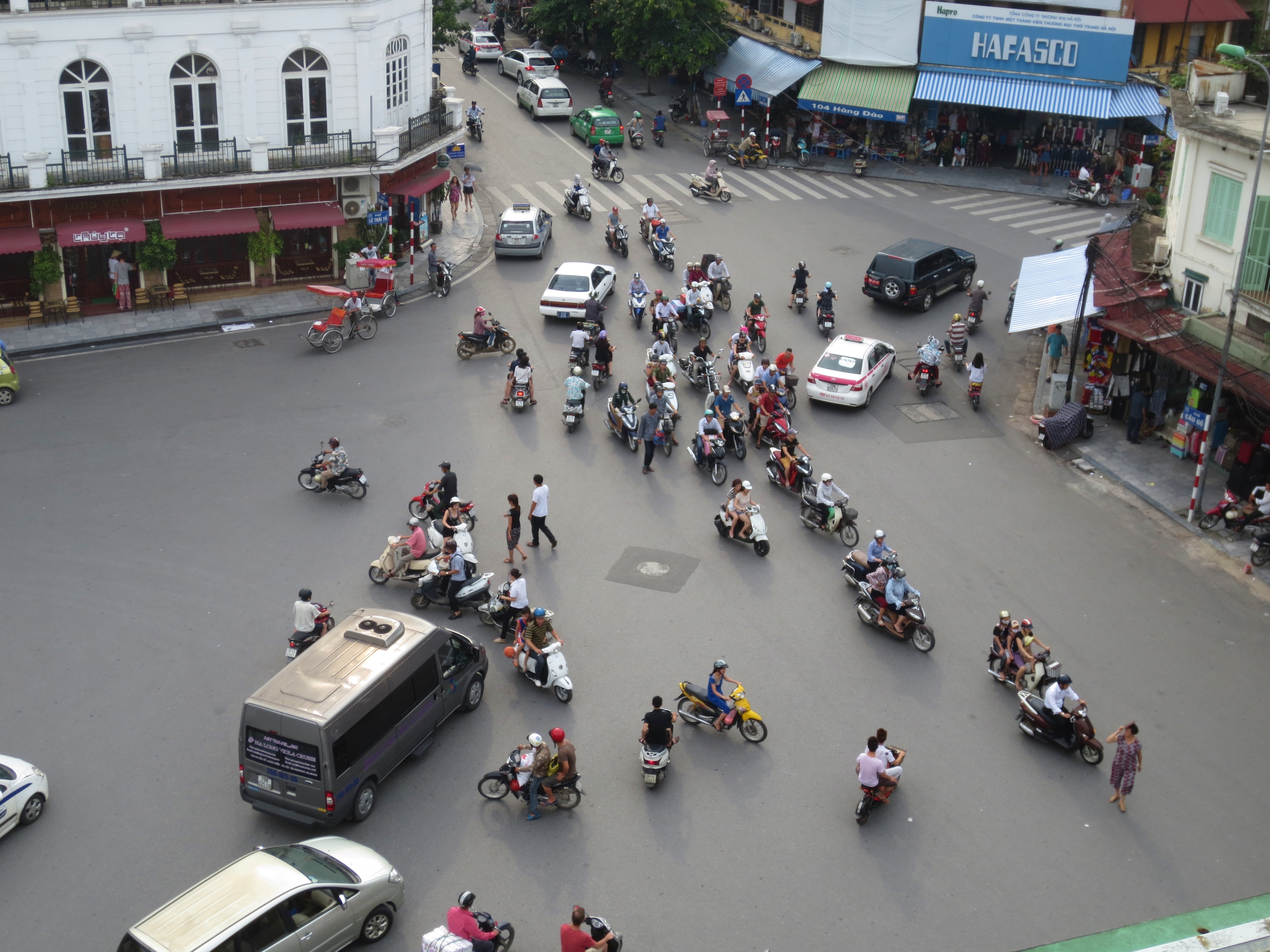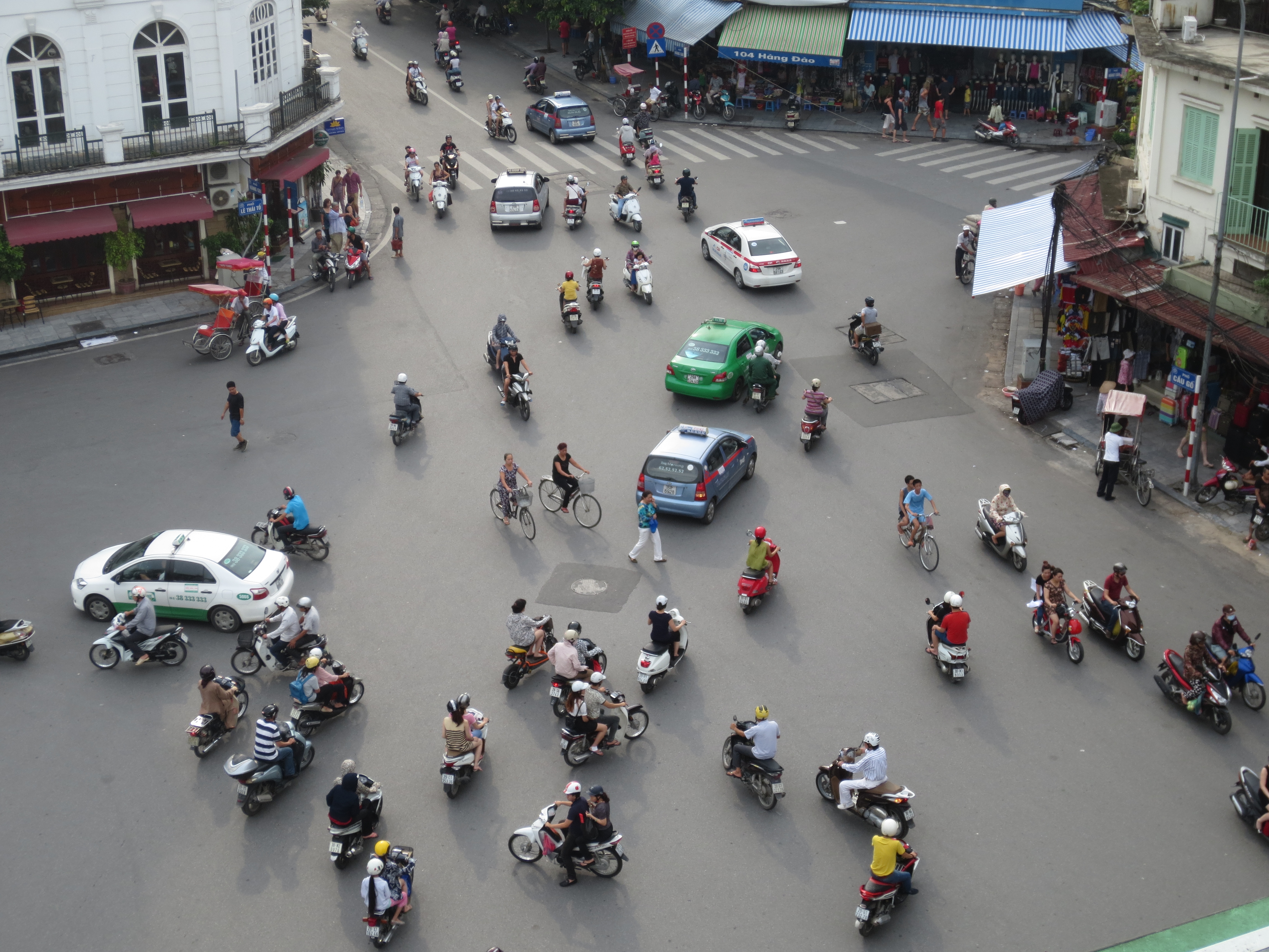 Look at these photos. I mean really look at them. Pedestrians, bicycles, cars, and motorbikes swarm through the streets, and the rules of the road are to take the shortest possible route while avoiding anything that crosses into your path.