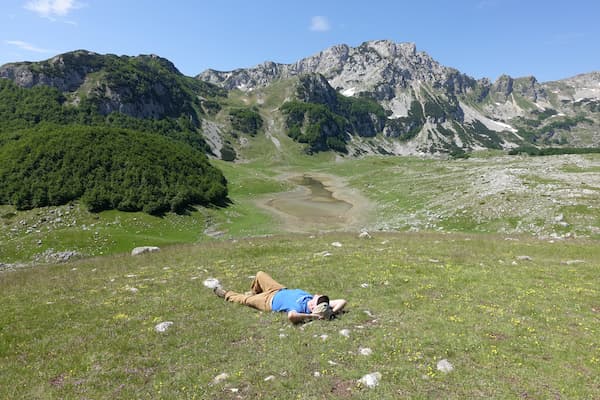 Bert laying down in the sun at Durmitor National Park, Montenegro.